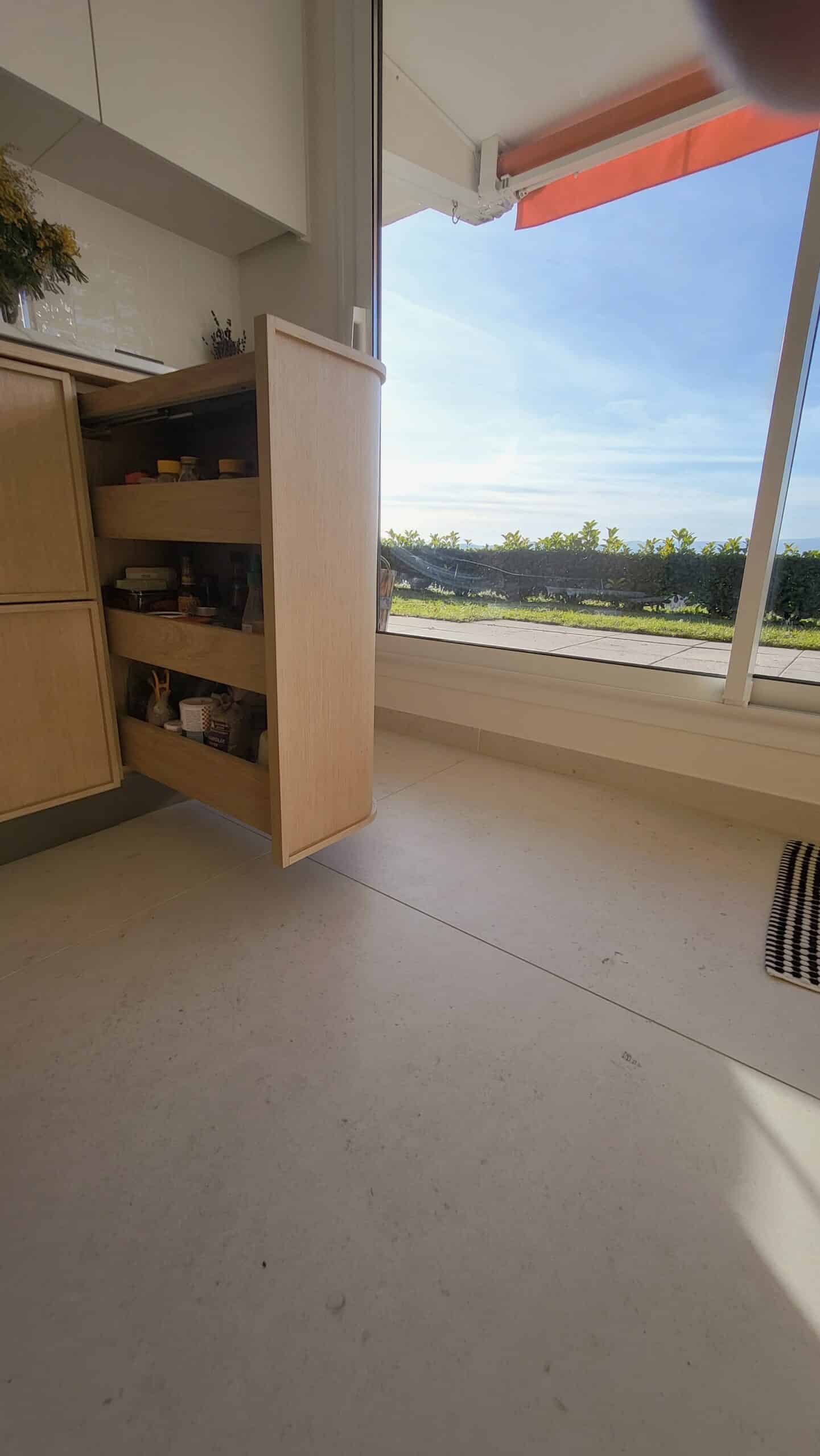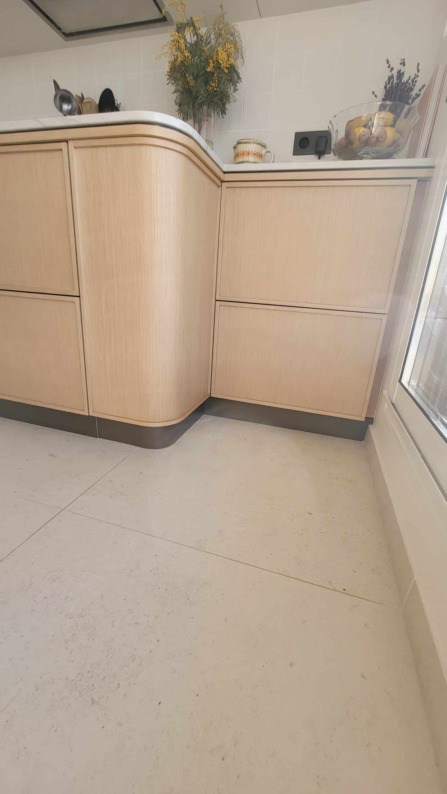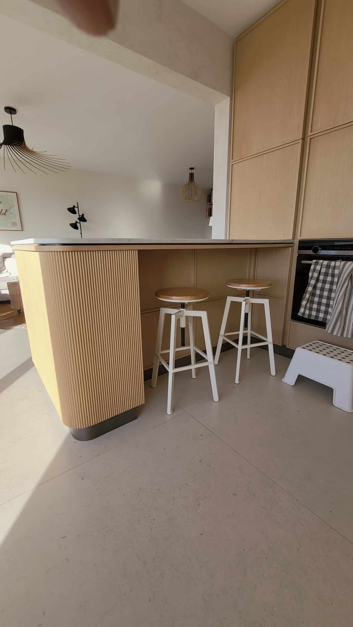 Cuisine sur mesure en bois naturel, aux lignes douces et contemporaines.Un espace pensé pour durer, vivre et partager. ✨Les arrondis adoucissent les volumes, apportent confort et élégance.